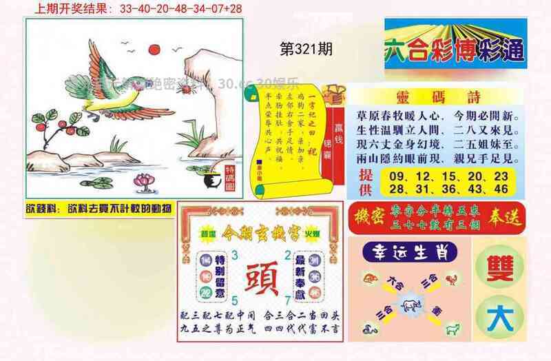 | 322期:无敌七肖【兔鸡狗羊牛虎猪】开:羊47准 | |||
