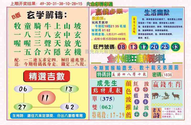 | 318期:无敌七肖【鼠马鸡龙猴虎猪】开:鼠06准 | |||